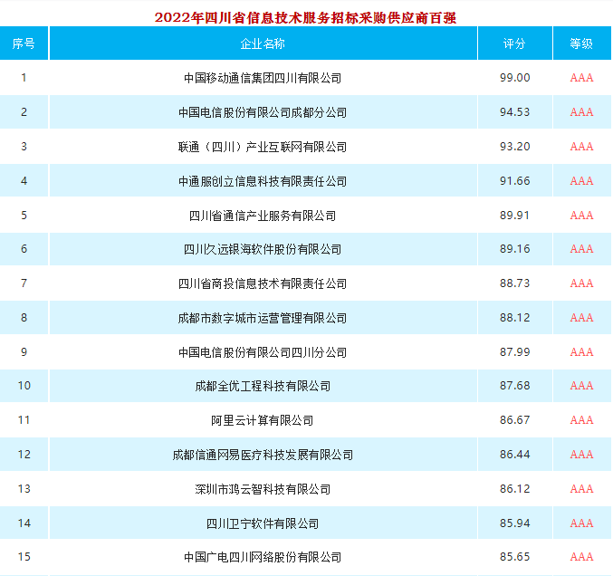 祝贺成都信通网易医疗科技发展有限公司在2022年四川省信息技术服务招标采购中位列医疗信息化供应商第一名!