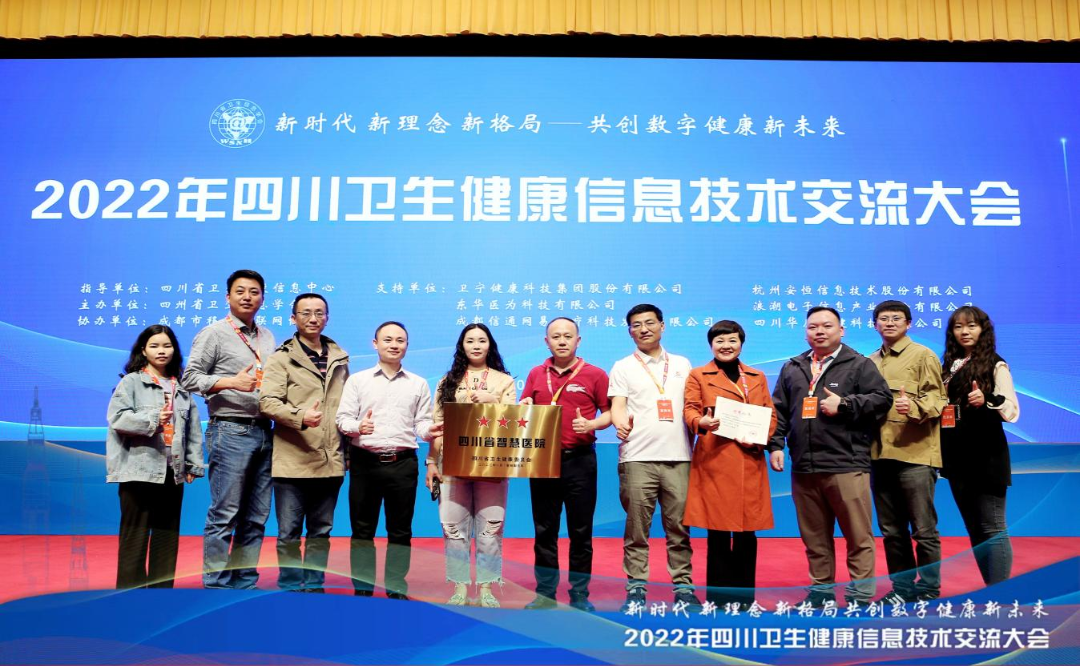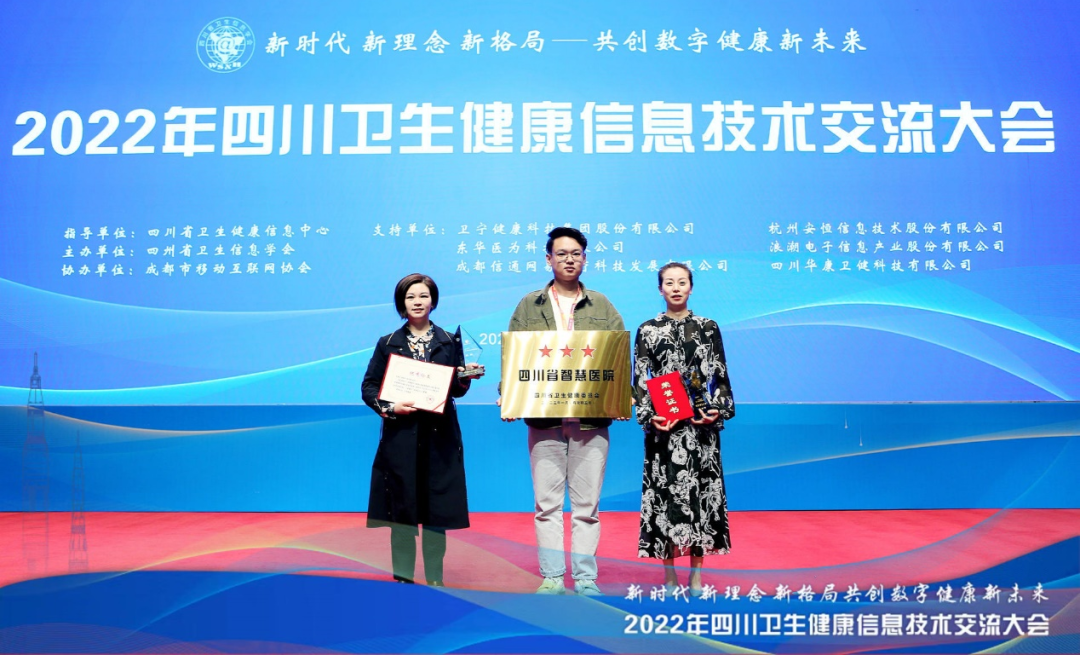 开幕式上举行了“2021-2022年度四川省智慧医院”授牌仪式。信通网易持续服务客户,助力客户医院在本次评选中再次交出成绩优异的答卷,其中:乐山市中医医院成为全省唯一中医三星智慧医院,成都市温江区人民医院成为全省唯一获此殊荣的区县级医院。
