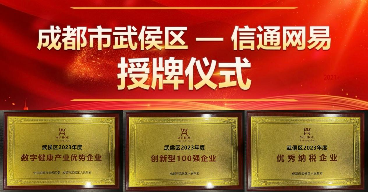 信通网易三十余年来专注于医疗卫生信息化领域持续耕耘,得到了来自领导与社会的广泛认同。2024年2月22日,成都市武侯区向信通网易授予“2023年度数字健康产业优势企业”、“创新型100强企业”等多项荣誉。